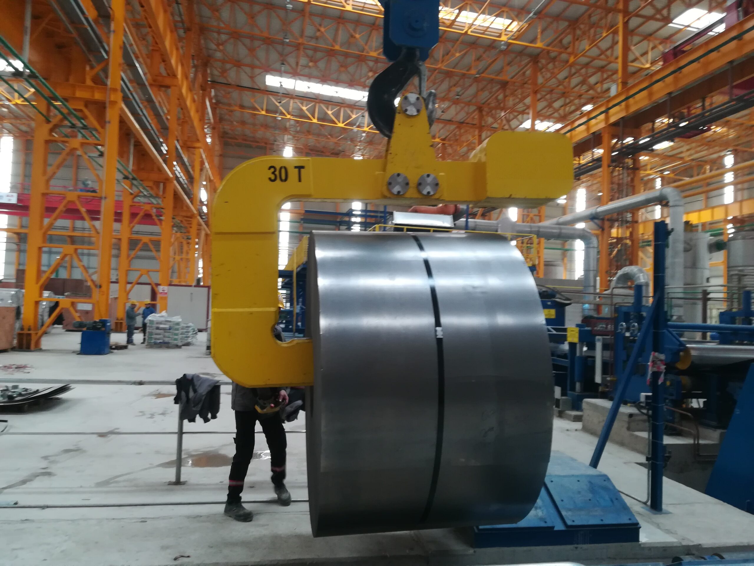 • Motorisierte Coil-Hebevorrichtung mit Innengreifarmen